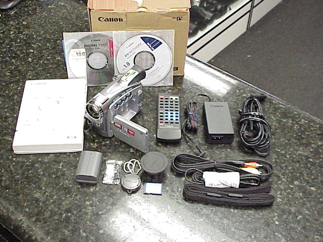 Included in the auction is the Canon ZR 90 camcorder, Canon CA-570